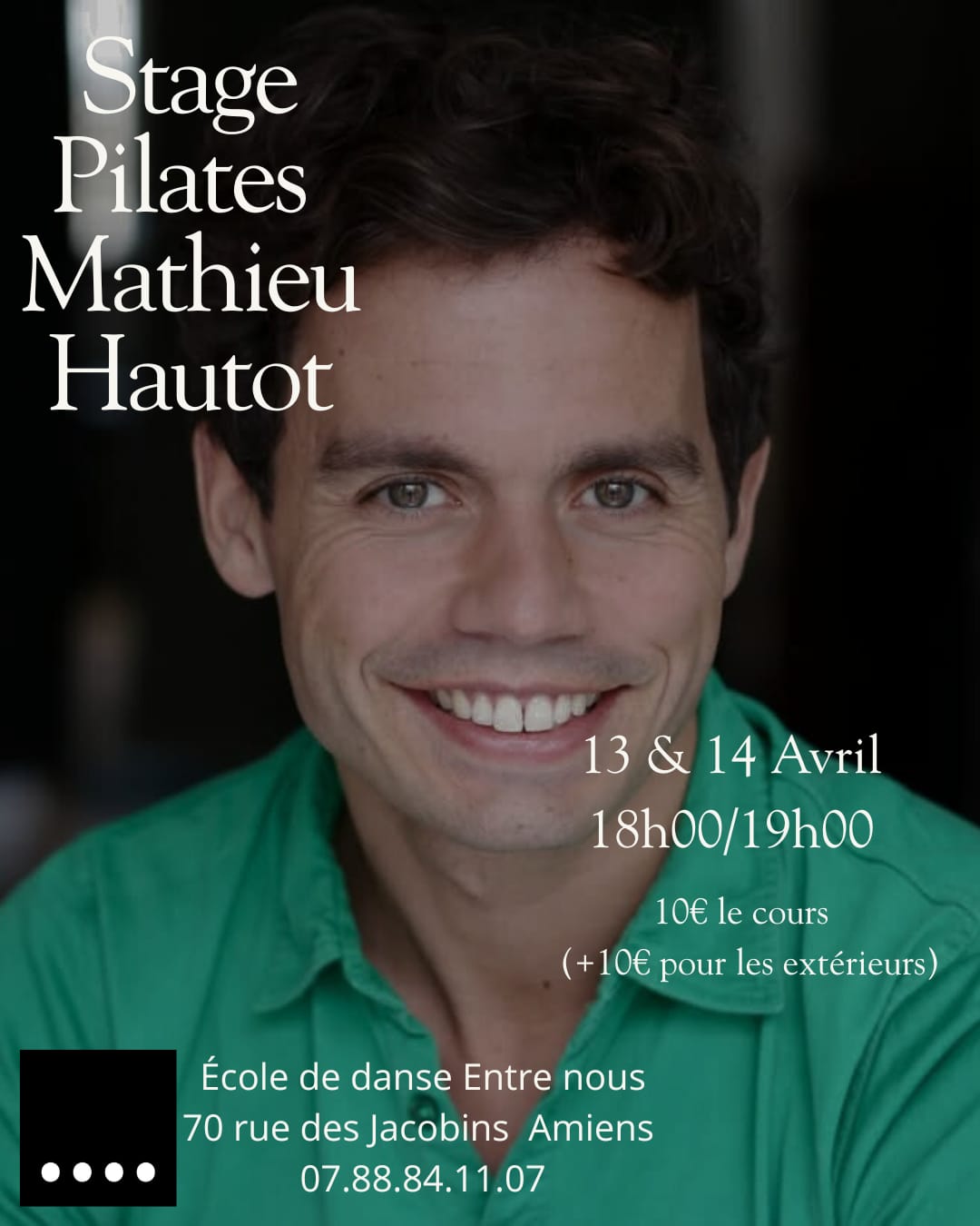 « Stage de Pilates » les 13 et 14 Avril de 18h00 à 19h00 avec Mathieu Hautot.Ce stage est pour les ados et adultes et sera tous niveaux. Réservations: https://www.helloasso.com/associations/entre-nous-amiens/evenements/stage-de-pilates