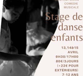 Notre traditionnel stage propose à vos enfants de danser pendant 3 jours (de 9h30 à 17h00) avec chaque jour un cours de danse classique (avec Manon Belair), un cours de danse contemporaine (avec Lauren Burosse) , un cours de danse jazz et un cours de comédie musicale (tous 2 avec […]
