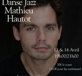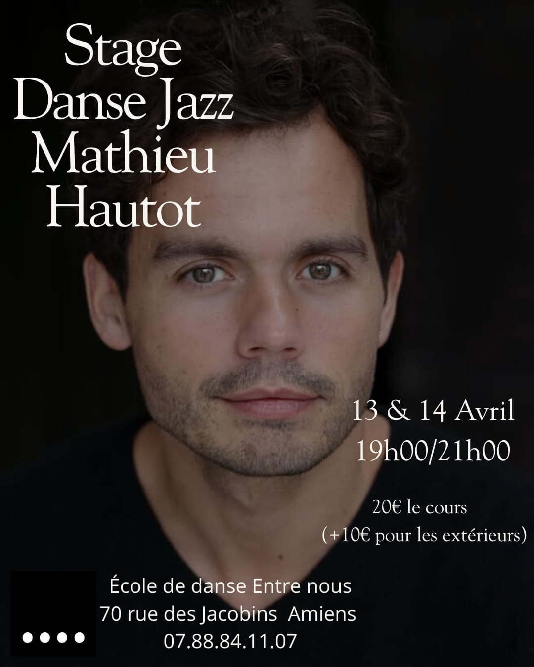 « Stage de danse jazz » les 13 et 14 Avril de 19h00 à 21h00 avec Mathieu Hautot. Ce stage est pour ados et adultes et sera un niveau intermédiaire/avancé. Réservations: https://www.helloasso.com/associations/entre-nous-amiens/evenements/stage-danse-jazz-avec-mathieu-hautot