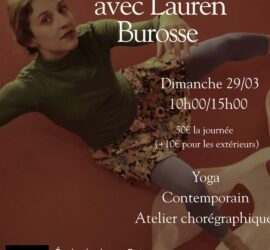 « Un dimanche avec Lauren Burosse » le 29 Mars de 10h00 à 15h00.Nous vous proposons de travailler avec Lauren toute une journée avec au programme: yoga (prévoir votre tapis), cours technique danse contemporaine et atelier chorégraphique. Lauren vous propose une journée entière pour se rencontrer et/ou se retrouver autour de ses […]