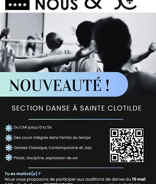 ✨ Vivre sa passion sans choisir entre l’école et la danse, c’est possible ! ✨ Nous sommes fiers d’annoncer l’ouverture de « La Classe Danse », un partenariat entre l’ensemble scolaire Sainte Clotilde et l’école de danse Entre nous. 🎓 Le concept ? Un emploi du temps sur-mesure pour allier […]