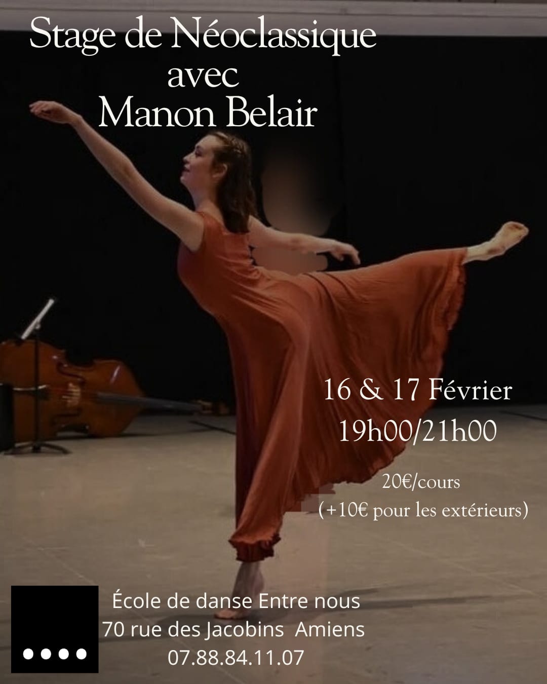 « Stage de danse néoclassique avec Manon Belair » les 16 et 17 Février de 19h00 à 21h00. Manon vous propose un stage de danse néoclassique avec 1h30 de cours technique et 30mn d’apprentissage d’une chorégraphie néoclassique. Ce stage est pour les ados (à partir de 15 ans) et les adultes, et […]